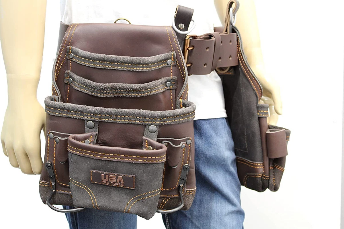 14 Pocket Top Grain Leather Framer Carpenter Fastener Tool Bag Belt Tool Rig Set Ebay
